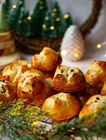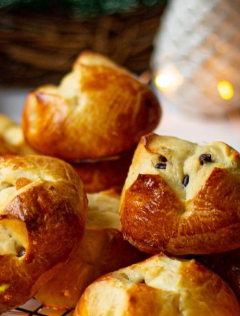 Don’t mistake it with a more famous pastry called « Stollen », which is made with candied fruits. Here we’re talking about little brioche made with golden raisin or chocolate chips, with a distinctive cross on top of it.