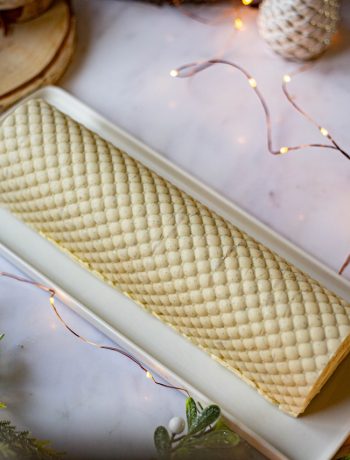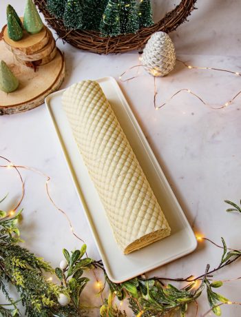 Here’s the full recipe to make a yule log, using the 30 cm De Buyer mold. You might have a bit of vanilla cream left over. In that case, grab a small spoon and enjoy the leftovers! 😉