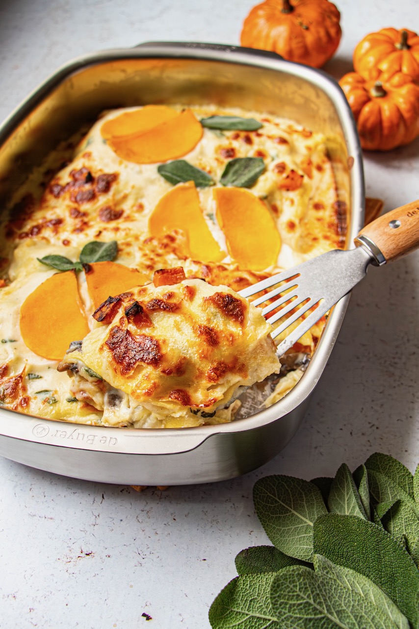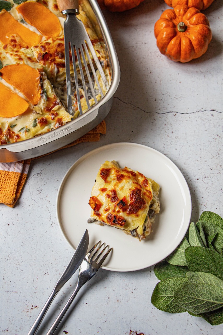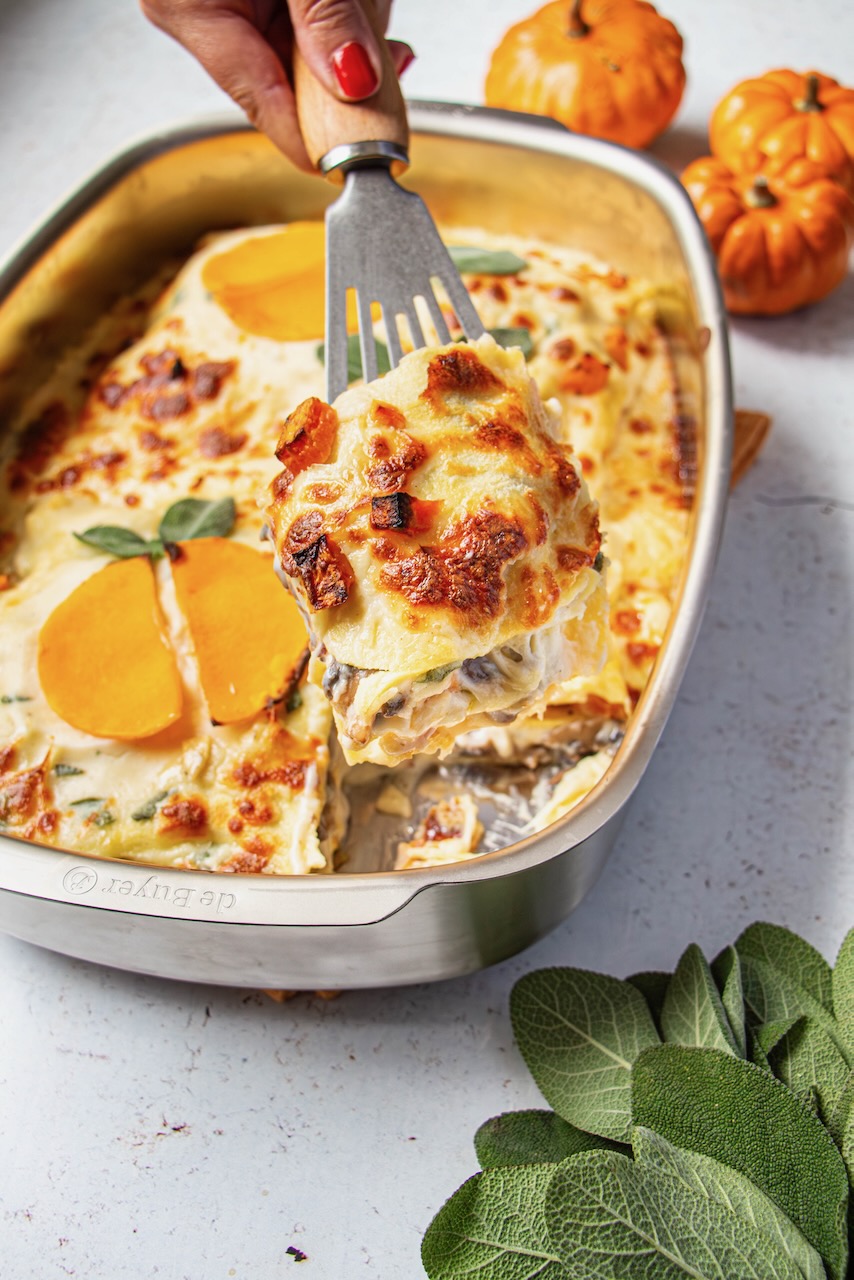 I believe today’s recipe is just what we need: here are my autumn lasagna with squash and mushrooms.
