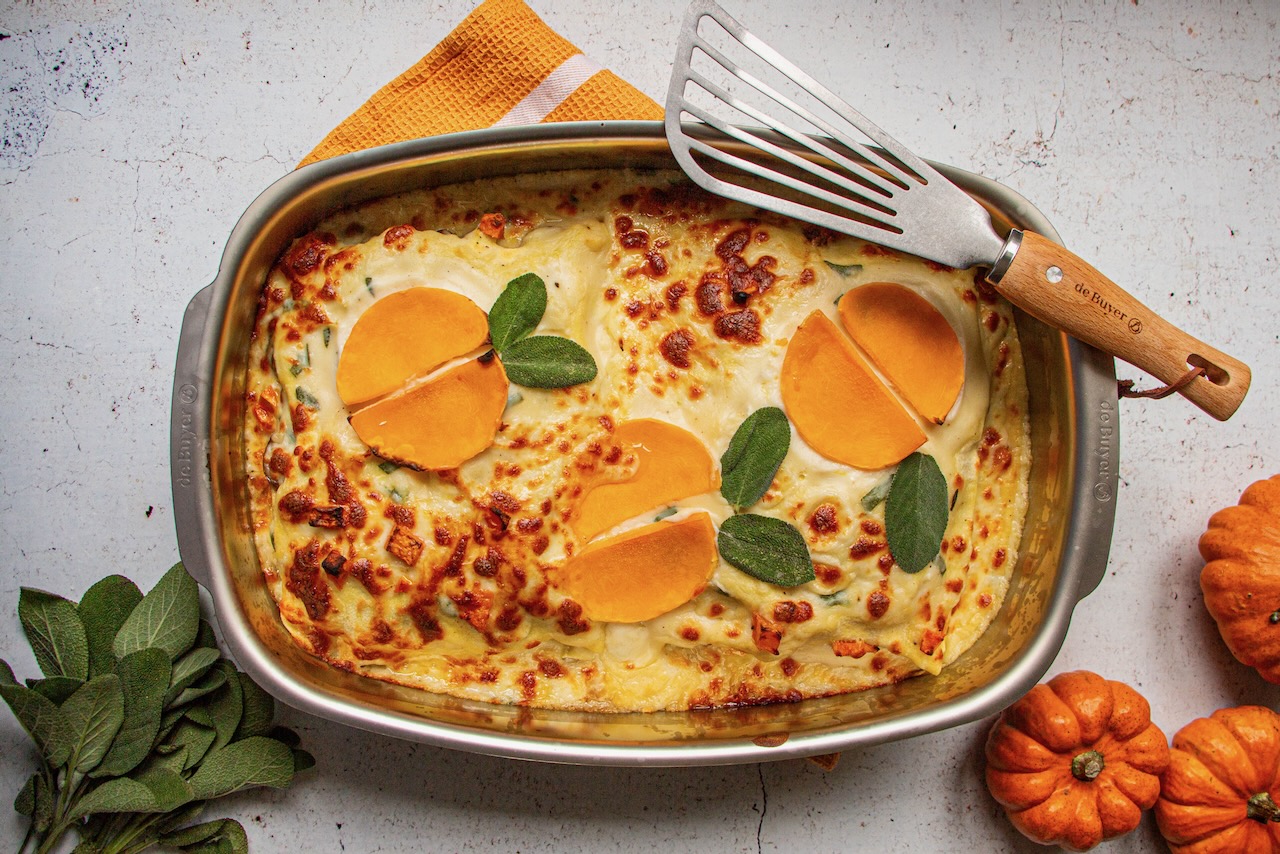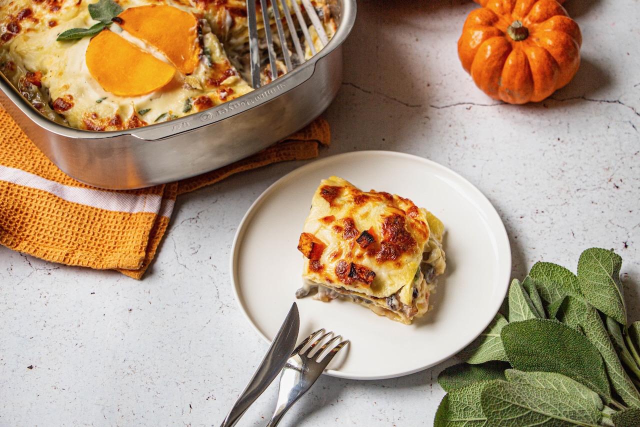 With this recipe for autumn lasagna with butternut squash and mushrooms, we’re diving deep into autumn flavors with the delightful combination of the sweetness of butternut squash and button mushrooms. The béchamel sauce adds creaminess for maximum flavor enjoyment.