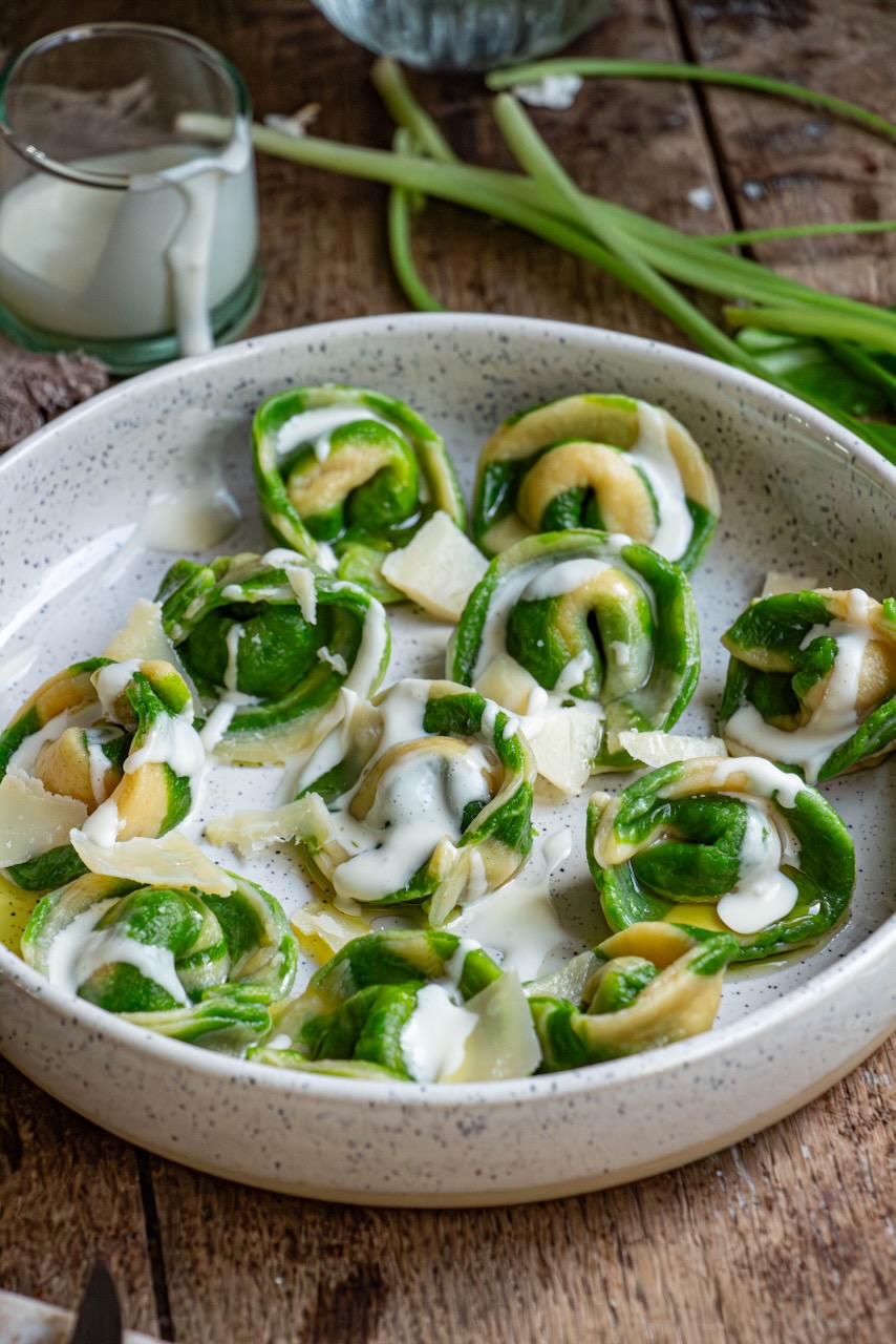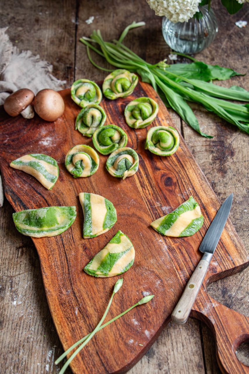 The only difference will be the coloring, which can be achieved using natural ingredients like spinach, beetroot, cuttlefish ink, or turmeric. In this recipe, I’ve created a mix of spinach and wild garlic to flavor the dough, which is also a very tasty option.