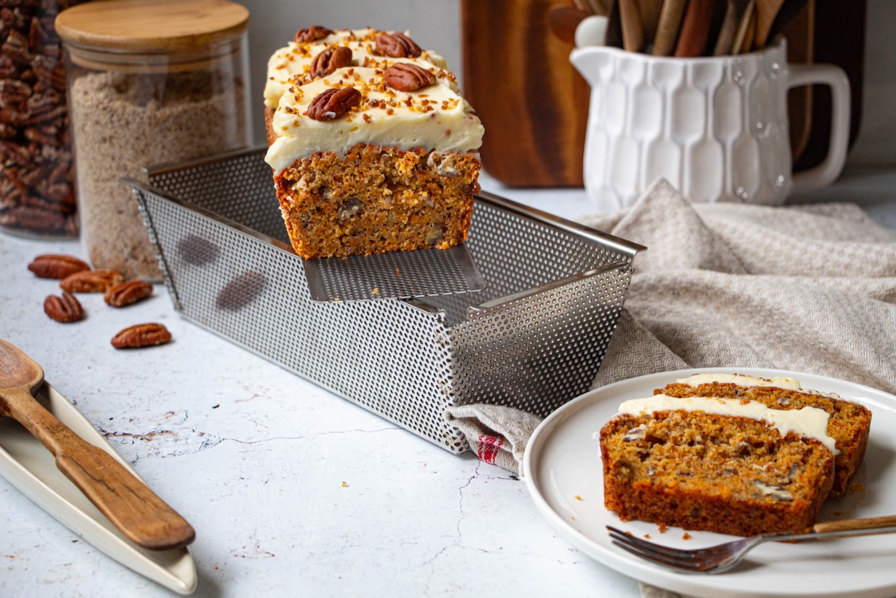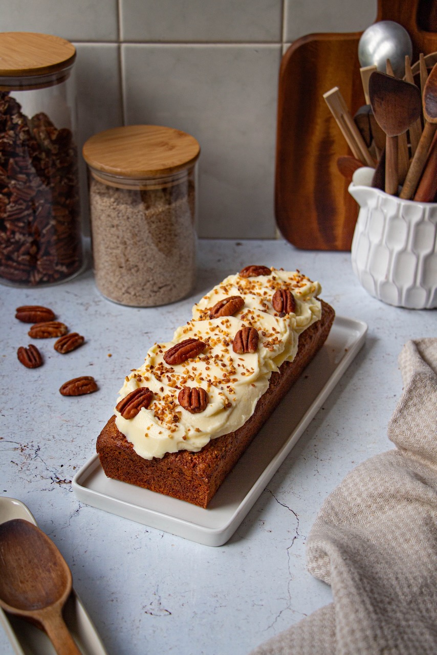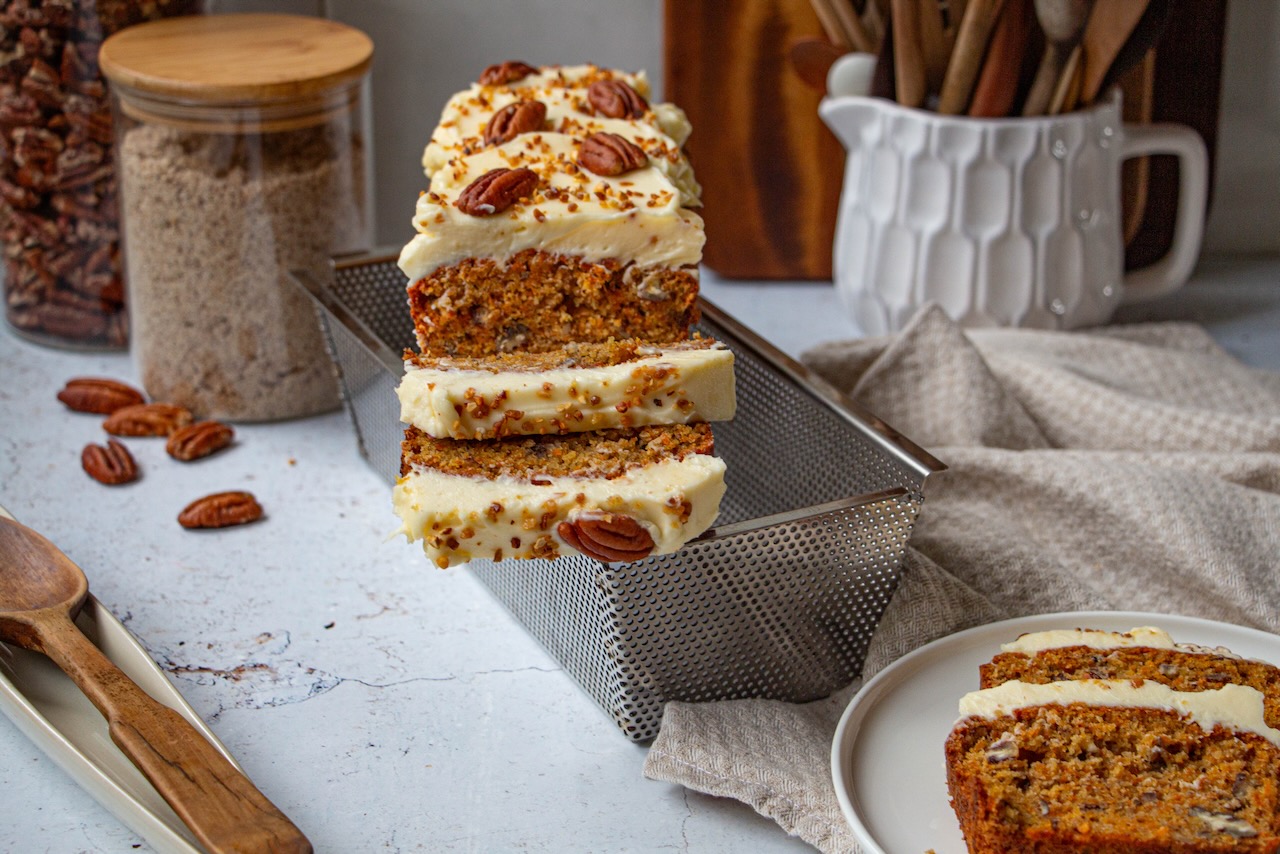 Grated carrots naturally add moisture and help prevent the batter from drying out, ensuring a soft texture even after baking. The spices and dried fruits are quite forgiving, allowing you to adapt the recipe to your preferences (I used praline and pecans here, but hazelnuts, cashews, or almonds would work beautifully!).