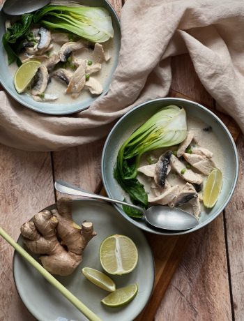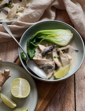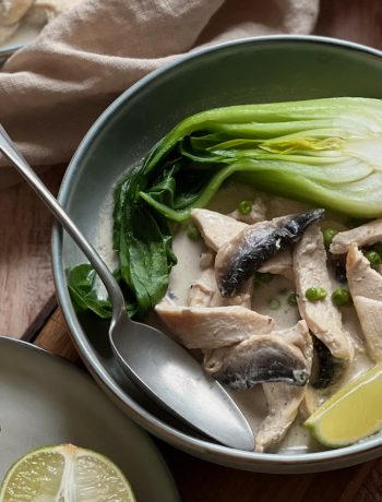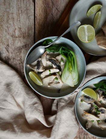 Going back to this Tom Yam Kai soup with coconut milk, know that it is full of flavors, textures, and is very healthy. Low in calories, you can serve it as a starter or a main course—it’s up to you. It can also be paired with rice noodles, egg noodles, or even rice. Let me know what you think!!