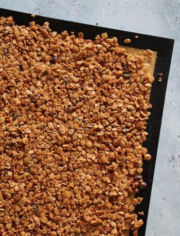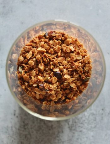 It’s very easy to make, very healthy, much lower in sugar than store-bought granolas (even organic ones), and it tastes amazing!