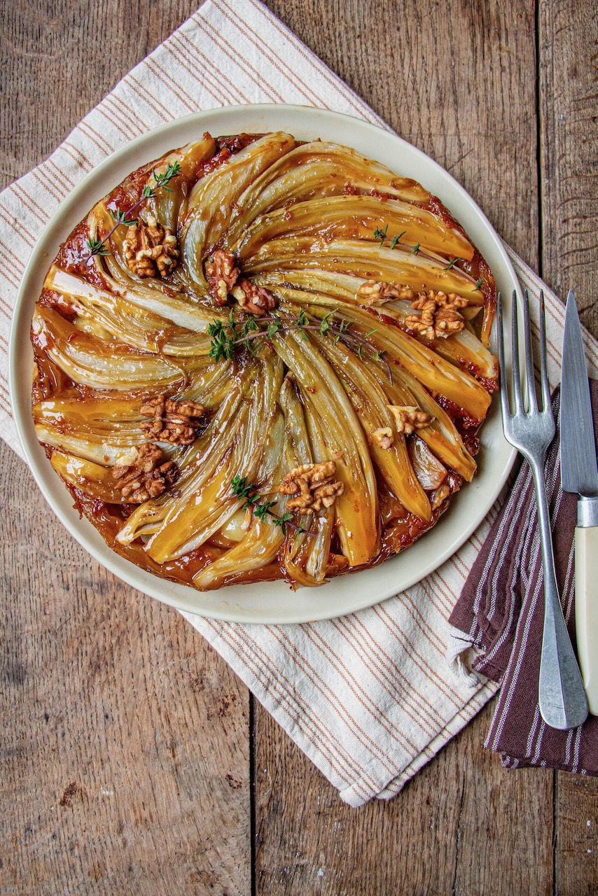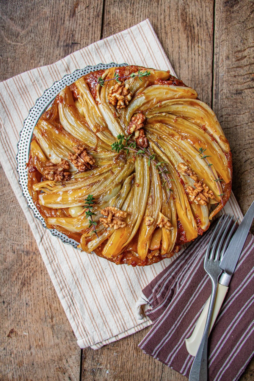 Let’s head to the kitchen, put on our aprons, and start making my endive, Comté, and walnut tarte tatin!