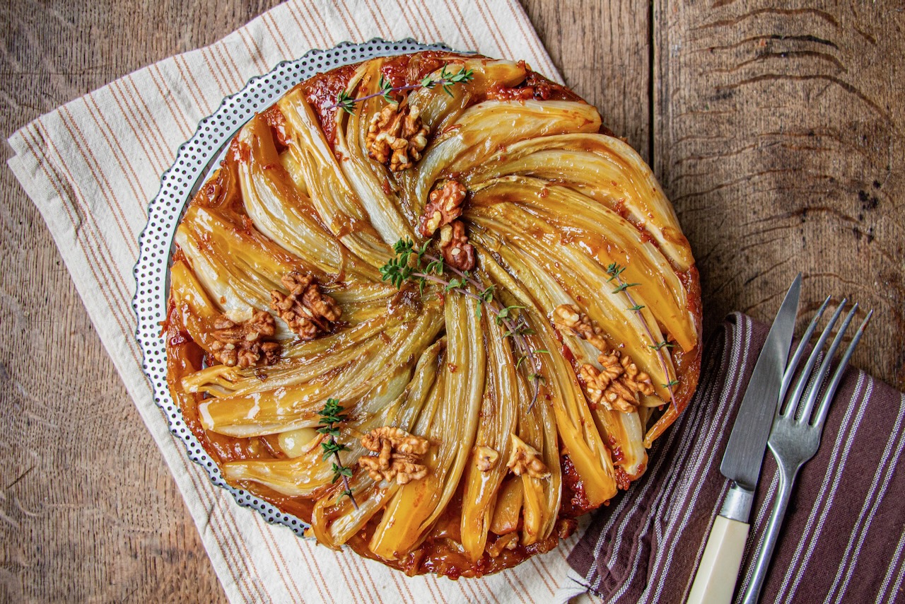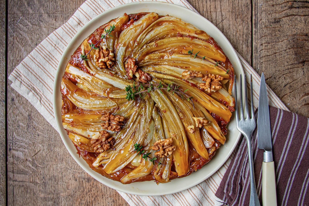 Endive, Comté, and Walnut Tarte Tatin