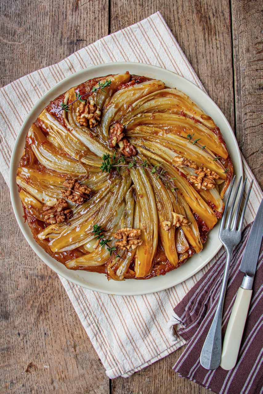 Here are my tips for achieving a beautiful endive, Comté, and walnut tarte tatin.
