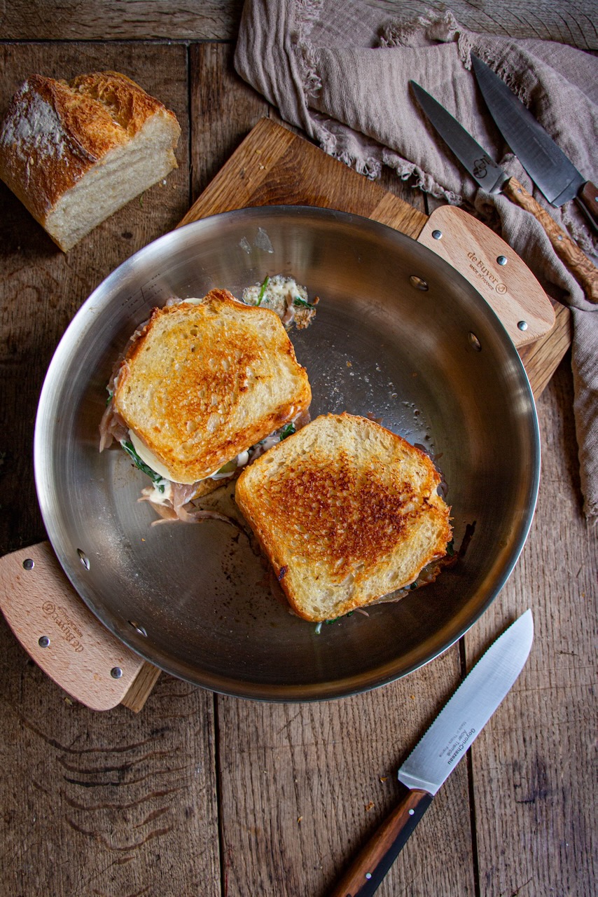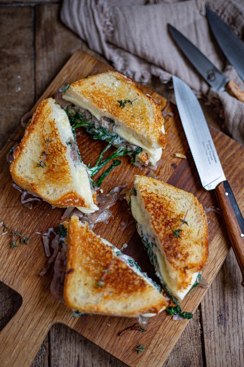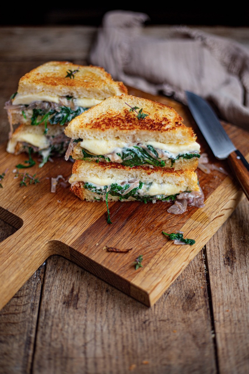 I aimed to create a comforting sandwich that was indulgent yet French, and of course, seasonal! With autumn upon us, spinach and onions immediately came to mind!