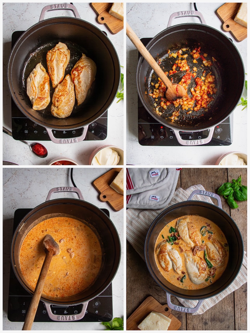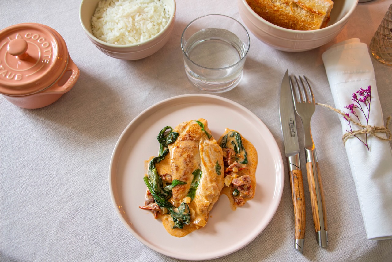 And here, we hit the mark! We’ll sauté the chicken fillets in our cocotte with a bit of fat. Then, we’ll make a quick sauce, and it’s ready to go! I truly believe you can’t go wrong with this recipe! So if you want to delight your partner (or your friends, or family), give it a try!