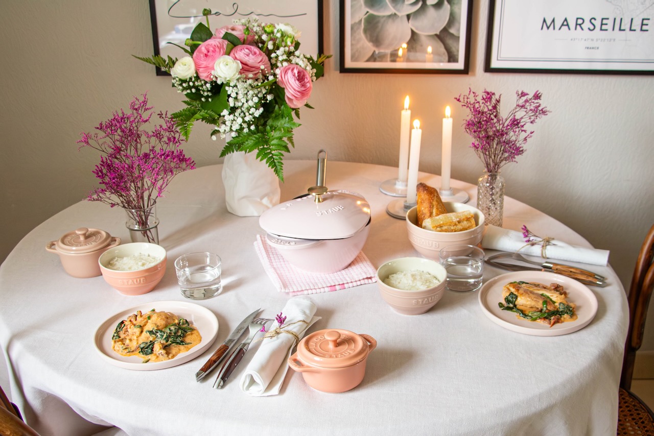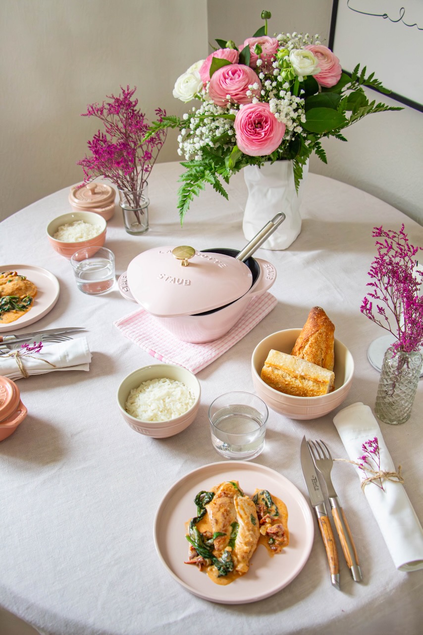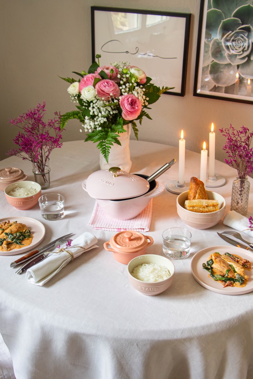You will also notice that I used some bowls and mini cocottes from Staub’s ceramic range (pastel colors that I adore) as well. I think they make for a lovely table setting. Do we agree?