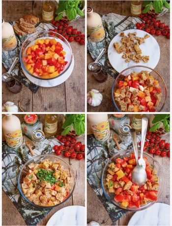 Cut the tomatoes and bread slices into cubes.