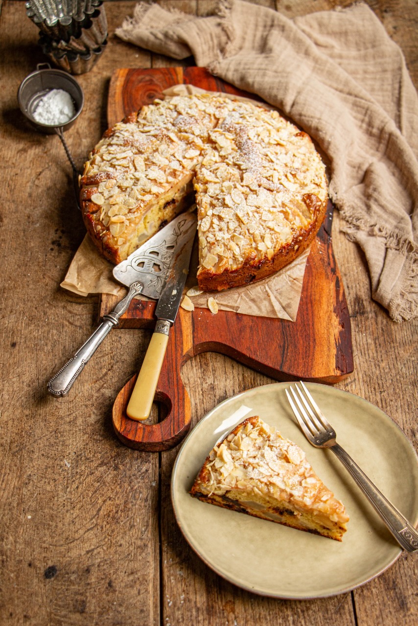 Pear, Chocolate, Almonds and Mascarpone Cake