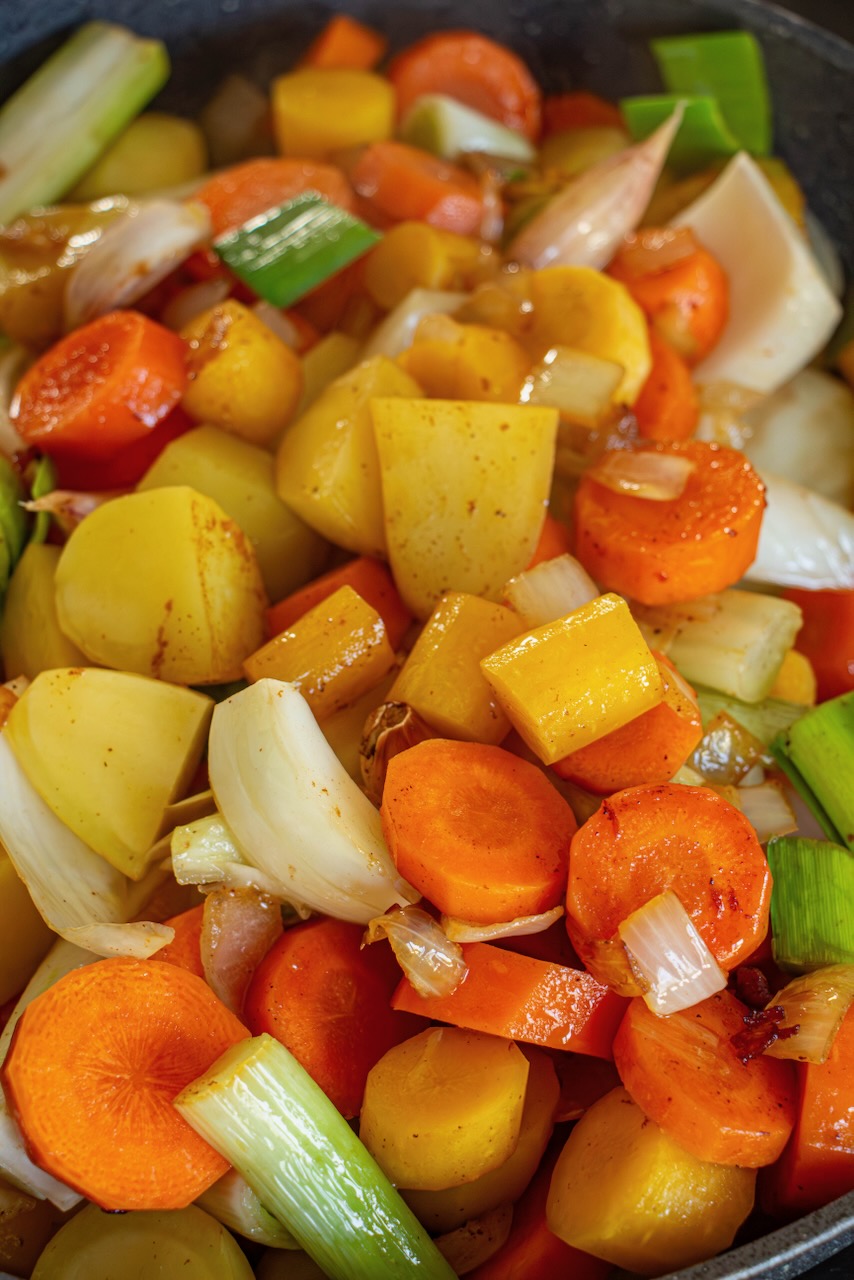 As for the vegetables, we’ll use what we have on hand and what we love! Sweet potatoes, squash, parsnips, or turnips—feel free to mix things up! This is a versatile recipe that can be adapted in countless ways!