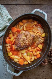 I recommend a cooking time of one hour for this dish. That’s fine. However, as much as possible, I always let my pork roast with winter vegetables cook longer at a lower heat. The longer your roast cooks, the more tender and flavorful it will be!