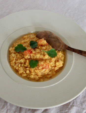 Today, I’m bringing you a super simple, delicious, and very healthy recipe: here’s my red lentil dahl!