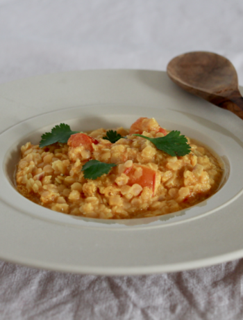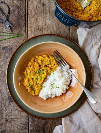 You can enjoy this red lentil dahl as a side to grilled meat or fish, with rice for a vegan meal, or with naan bread… Absolutely delicious!