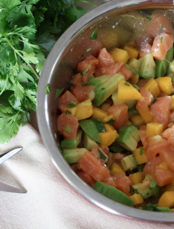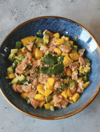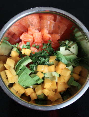 It’ll be just as nice in a pretty salad bowl in a “serve-yourself” style! Especially if you’re making a large batch of this salmon, avocado, and mango tartare for a buffet, for example.
