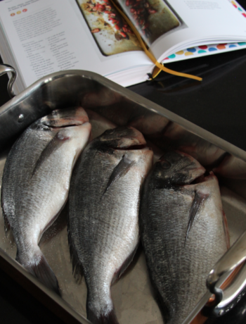 I did it my way as always because 1/ I couldn’t find trouts when I went to my fishmonger’s, 2/ he had wonderful sea breams, and 3/ because I was missing some of the ingredients…
