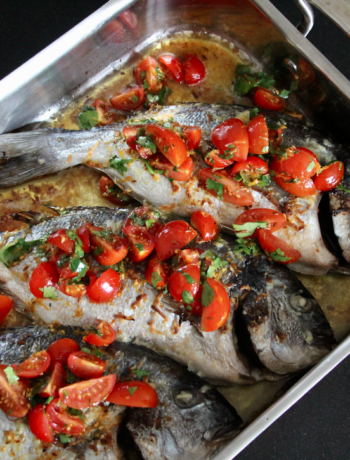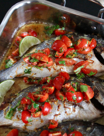 This recipe, which is to die for, can be prepared in 10 minutes (I promise!! I’m not even exagerating here…), cooked in 20-25 minutes depending on the size of the fish and that’s it! You just have to ask your fishmonger to empty the fish and chip it.