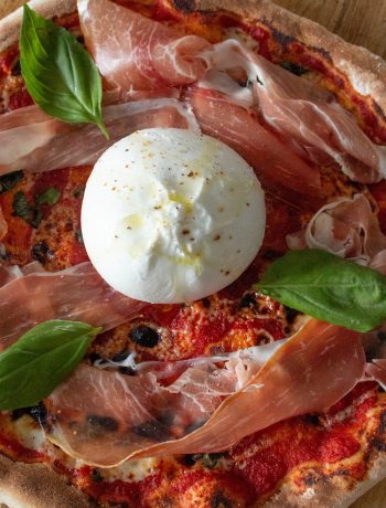 Parmesan Cream, Prosciutto and Burrata Pizza