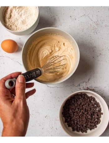 That being said, you might ask, « Why put tahini in cookies?? » First of all, what is tahini? Tahini is a sesame paste, an oriental preparation made from ground sesame seeds with a bit of water until it forms a smooth paste. It is rich in calcium and phosphorus (which is already a great reason to use it) and gives these tahini and chocolate chip cookies a unique texture: crispy on the edges and super soft in the center. As they say in English, they are « chewy. »