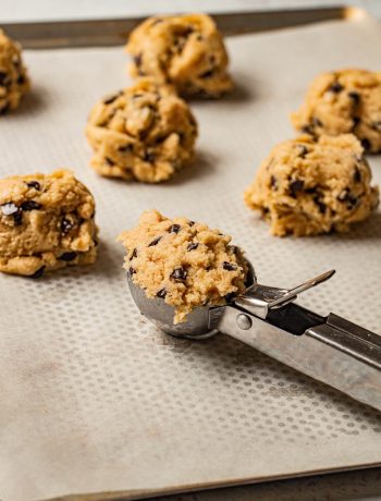 With an ice cream spoon, make 14 balls and place them on 2 baking mats. Keep 2 inches space between each of them.