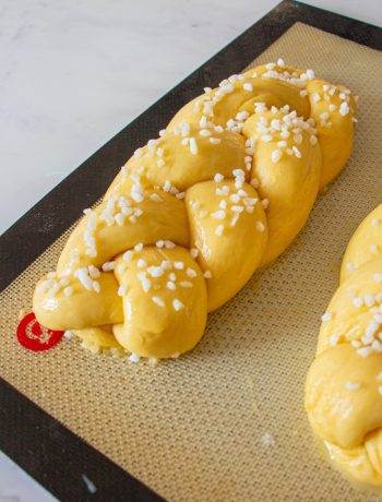 Also, I chose to sprinkle my brioches with pearl sugar. You could also add a royal icing and slivered almonds, for example, or mix chocolate chips into the dough. It’s all a matter of taste or mood…
